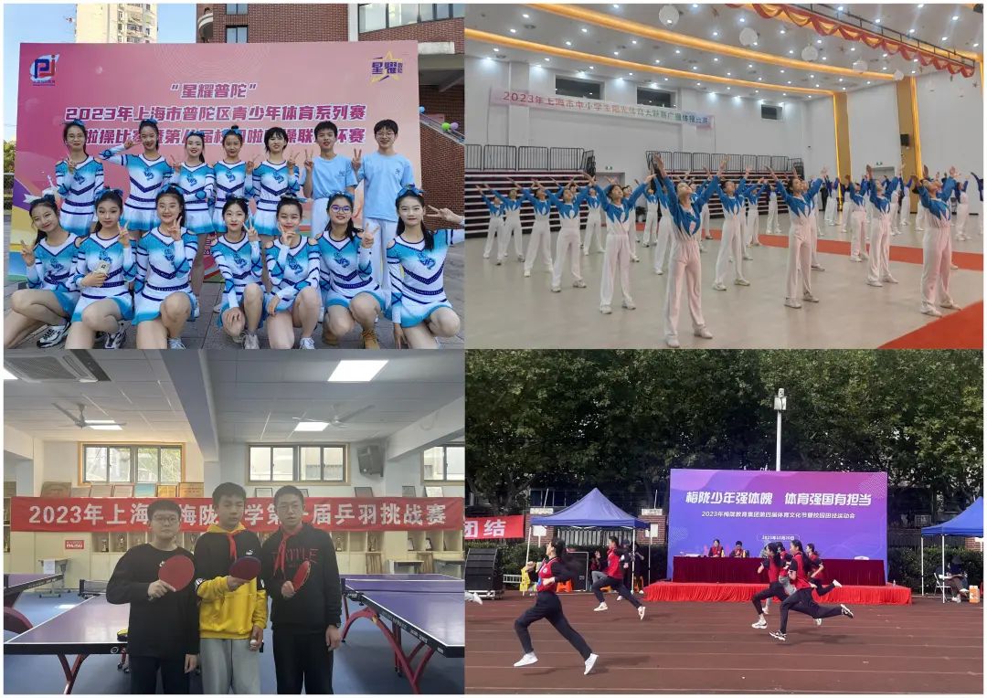田径、啦啦操、羽毛球、乒乓球……普陀梅陇学子们在各项展示或比赛中提高运动能力,养成健康的生活方式,在体育锻炼中享受乐趣、增强体质、健全人格、锤炼意志。2023年,学校各项体育活动直接参与人次达9350人,学校组队参加市、区各级各类比赛,全年参赛人数546人,获得团体奖项21项。