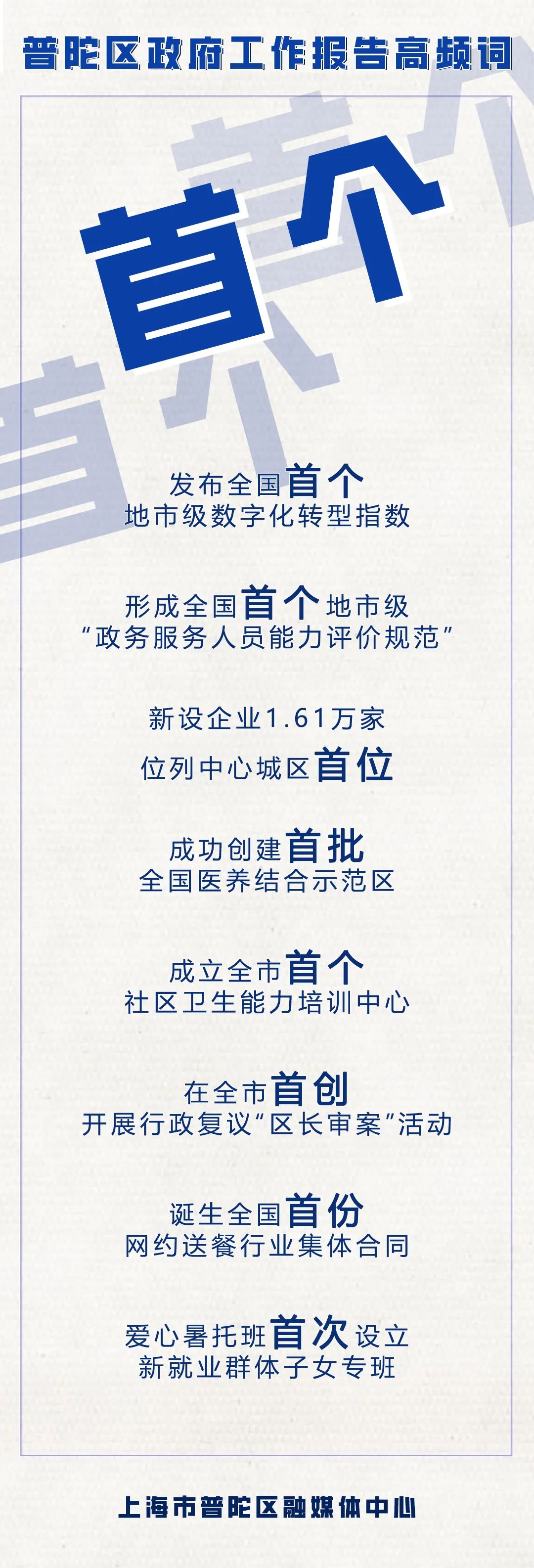 1月16日下午,上海市普陀区第十七届人民代表大会第四次会议隆重开幕。区委副书记、区长肖文高代表普陀区人民政府向大会作政府工作报告。过去一年,普陀区完成哪些工作?这些区政府工作报告中的高频词,和大家工作生活息息相关,一起来看!