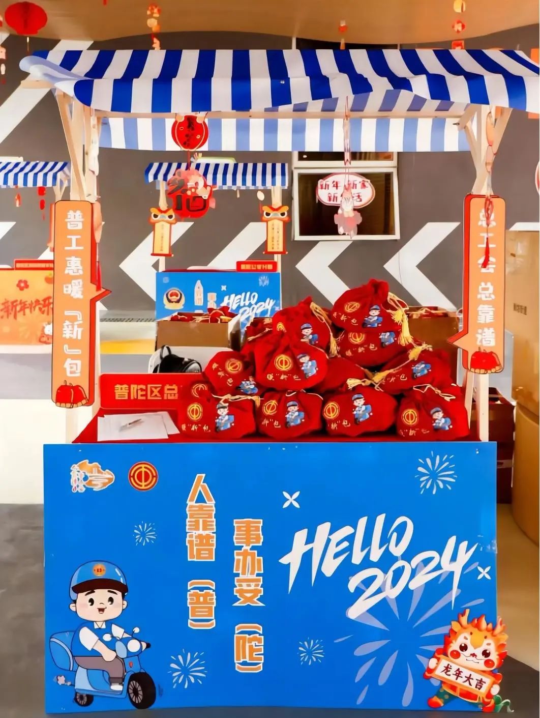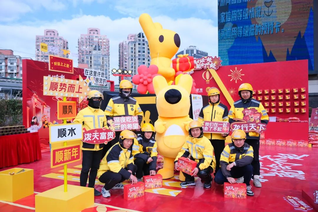 快闪活动设置 “袋鼠君”爱的抱抱、“鼓足干劲”击鼓祈福、滚滚向前“跨龘年”“灵的灵的”好运上上签等创意互动环节,还定制“开运红毯”“龙年显眼包”“全力以富福袋”等文创礼品,为骑手带去美好祝愿,诠释“我们在一起,就会了不起”的主题。