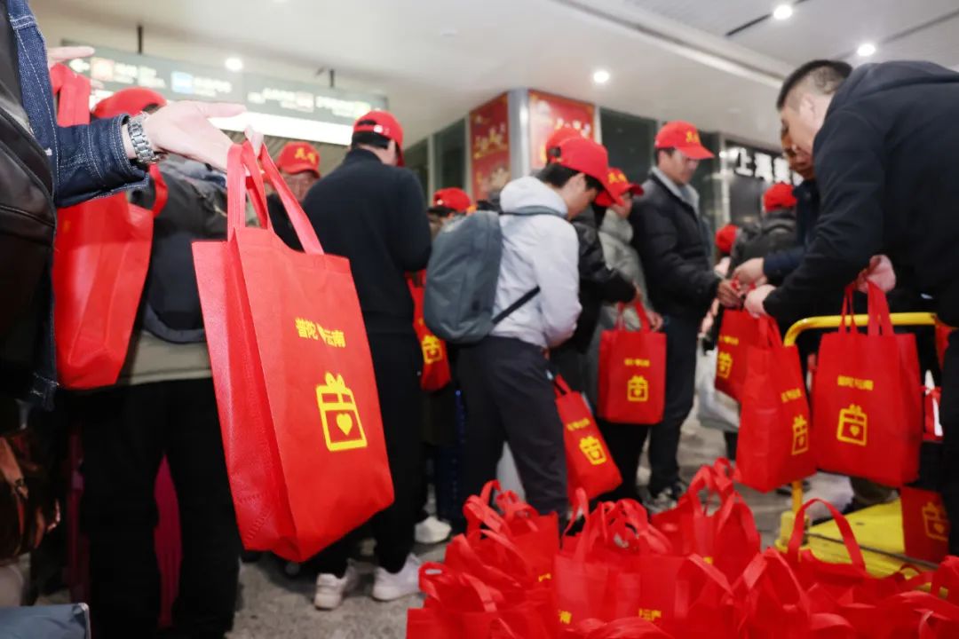 “热情欢迎你们来普陀就业,希望你们新的一年工作生活皆顺利!”刚下高铁站,在虹桥站到达大厅,来自普陀区相关负责人就举着“山海相连 上海欢迎您”的横幅热情迎接来沪务工人员,并为他们送上了印有“普陀爱云南”的入职大礼包。