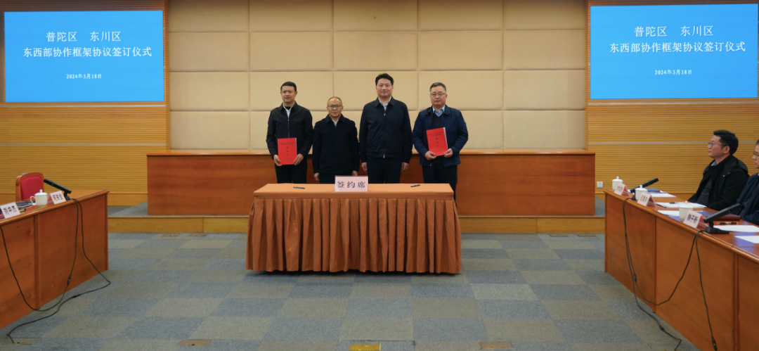 会上,普陀区与东川区签订了东西部协作框架协议,双方将进一步密切往来、深化合作、携手共进。