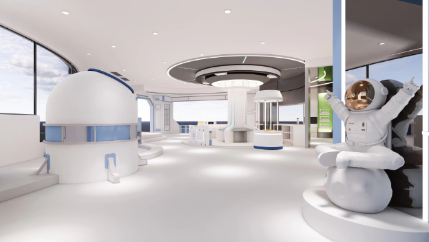 在当下对科技创新人才早期培育的探索中,中托普陀园区也将基于科学理念开展实践。园区将以“航天科技”为主题,在幼儿发展优先的理念下,打造星空馆、科探活动室、图书馆等专用活动室,室内外主题联动,在互动体验、趣味探索的过程中,培养婴幼儿好奇提问、善于思考、敢于创造的学习品质。