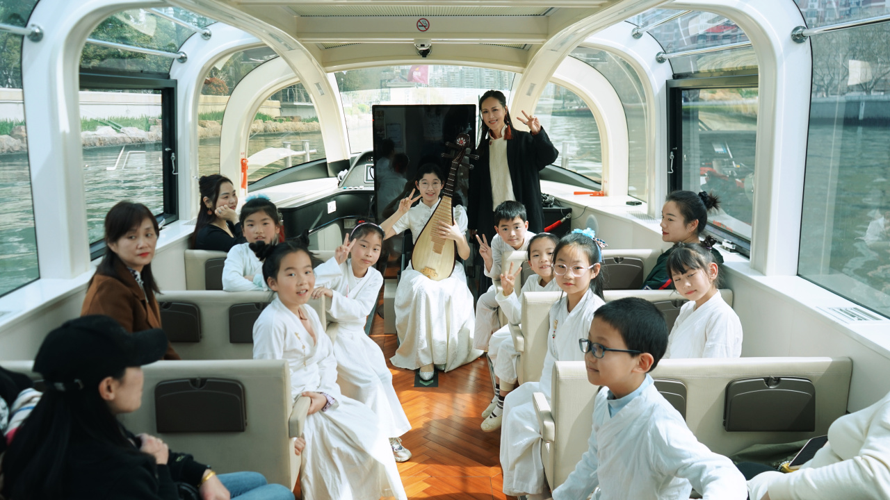 而在她们身后,一艘艘苏州河游船从长风码头缓缓驶出,前往位于天安千树附近的昌化路码头。值得一提的是,船上还特别安排了阅读分享、诗词鉴赏、音乐导赏等多种文旅融合美育形式,让市民游客在这一小时的游船时光中,不仅能欣赏两岸风光,更能品味苏河传统文化,感受普陀的魅力。