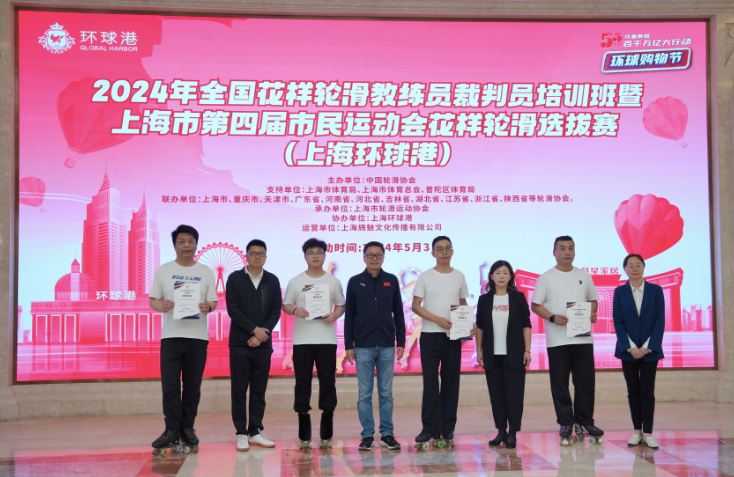 来源: 上海普陀5月3日,2024年全国花样轮滑教练员裁判员培训班暨上海市第四届市民运动会花样轮滑选拔赛在上海普陀环球港举行。活动由中国轮滑协会主办,上海市体育局、上海市体育总会、普陀区体育局支持,上海市轮滑运动协会承办。