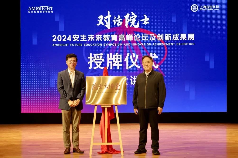 活动现场,杨雄里、褚君浩和安生师生共同为上海安生学校“院士专家科普讲坛”揭牌。卢秉恒向安生教育科学研究院院长、上海安生学校理事长张梧华授“院士大讲堂”铭牌,并宣布将定期与上海安生学校学子交流。
