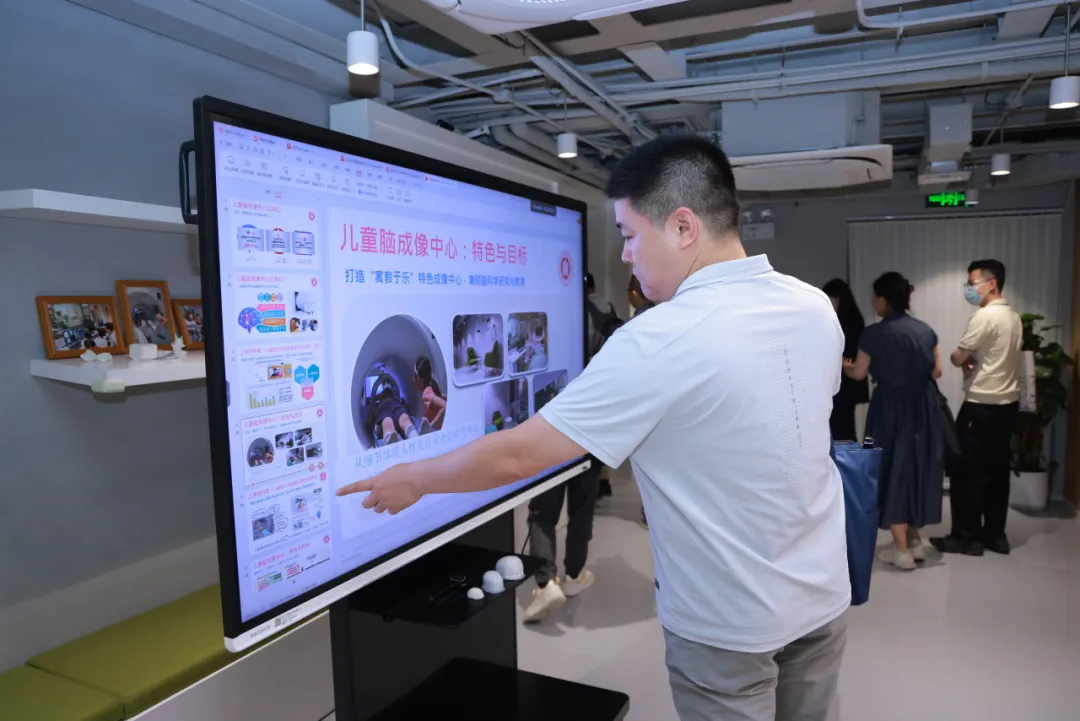 在沙龙的参访环节,嘉宾们共同前往华东师范大学儿童脑成像中心进行参观,了解教育究竟如何重塑人的大脑,从脑科学的角度探讨儿童发展问题,中心专注儿童脑智发育与开发领域的研究,对提升我国战略科技力量、助力国家经济社会可持续发展有着特殊的重要意义。