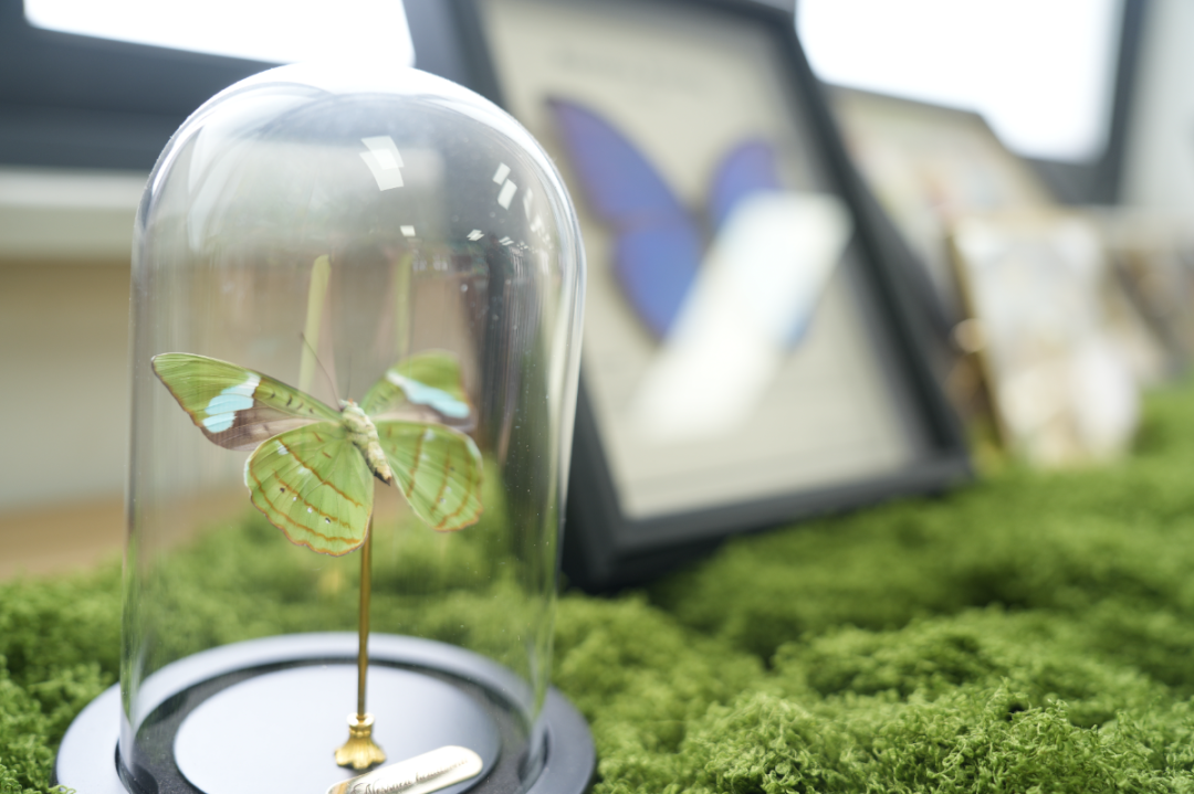 宜川公园生物多样性市民园艺中心(后称:园艺中心)位于公园中央位置,建筑面积约为144平方米,走入后视野明亮、设计简洁,通过优化参观动线,园艺中心内部分为了5个功能区:党建园地、科普教育区、生态科学区、生态昆虫标本展示区(昆虫记)和科普文献区。市民游客,特别是学生、孩子们可以在不同分区直观地了解生物多样性知识及重要性,观察身边的常见益虫和害虫,如各种蝴蝶、蜘蛛标本,并在绿植包围中静心阅读。