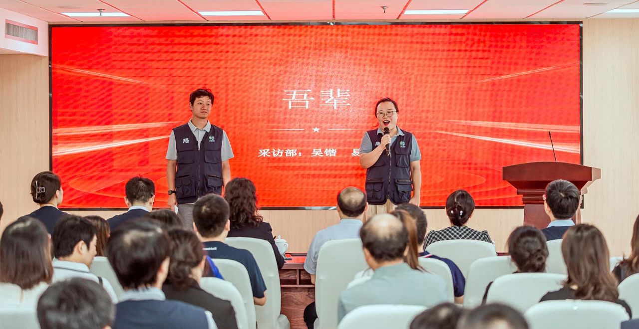 会上,与会人员首先一同观看了中心成立五周年回顾短片。来自区融媒体中心采访部的记者们分别围绕“吾辈”“悟心”“毋我”“无畏”“舞动”五个关键词进行了交流分享,讲述那些关于采访和记录的故事。同时,总编室、编辑部、运营部、技术部和办公室等部门也分别通过不同形式,讲述了五年来与融媒体中心共成长的经历和感受。总编室带来配乐诗朗诵《在路上》;编辑部通过视频演讲风趣幽默地分享了《编辑部的故事》;运营部、技术部和办公室则围绕《以“三真”为本,护航融媒茁壮发展》主题作了交流。
