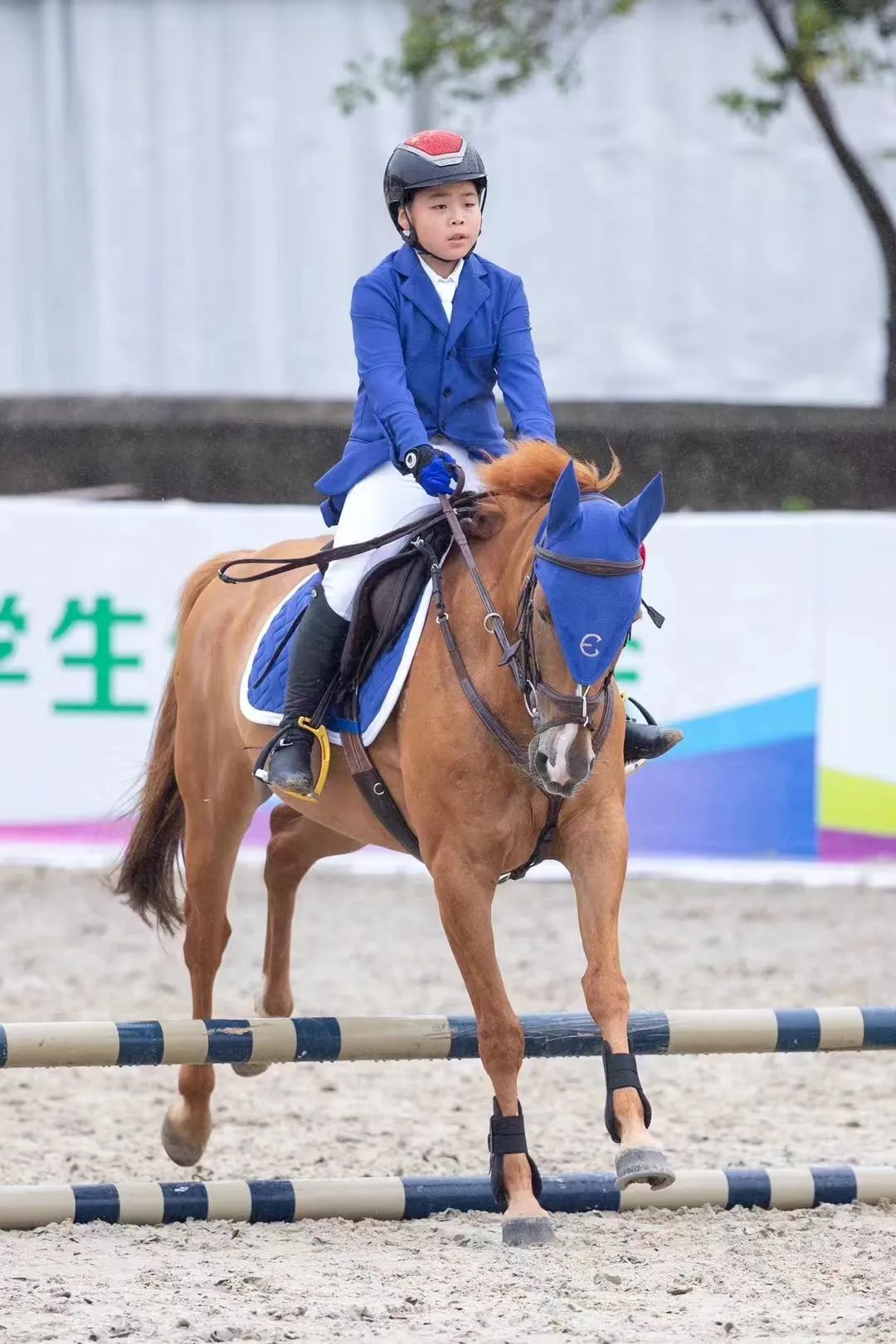 同样在这片充满魔力的赛场上,华外实验的王一墨同学以其坚毅不拔的精神,策骑马匹小青龙,在小学组1-3年级个人赛场地障碍基础赛评分赛中勇夺金牌。四年的勤学苦练,从害怕马背到掌握马术障碍基本技巧,她经历了无数次的失败与爬起。在学运会的赛场上,她与马匹小青龙默契配合,面对高温和体力的极限挑战,她坚持不懈,最终以稳定的发挥赢得了金牌。当她站上领奖台的那一刻,所有的汗水和泪水都化作了胜利的喜悦。
