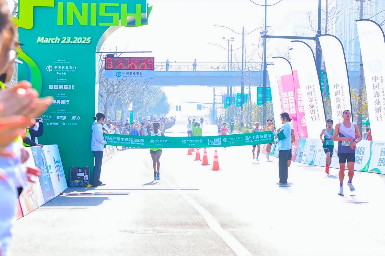 最终,马瑞以1小时05分47秒的佳绩夺得2025中国农业银行上海市分行上海苏州河半程马拉松赛男子组的冠军,肯尼亚选手MURIUKI NAOMI WAMBUI则以1小时18分09秒的成绩在女子组的争夺中折桂。经过3小时15分钟的等待,2025中国农业银行上海市分行上海苏州河半程马拉松赛迎来关门时刻,经统计,本次赛事完赛率达99.55%。