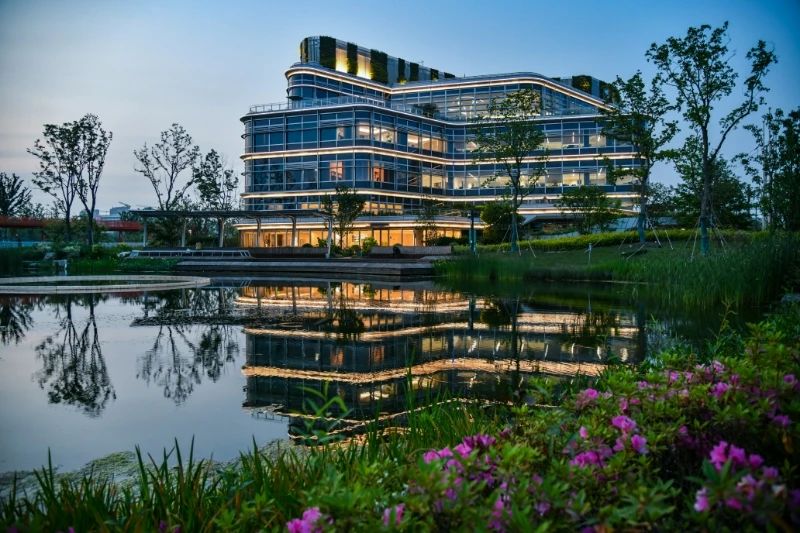 随后,一行人前往坐落于李子园公园的长三角一体化绿色科技示范楼。作为上海市最大单体的近零能耗建筑,大楼内部量身定制了一套“智慧运维平台”,运用数字孪生、物联网、大数据、人工智能等多项技术,最大限度减少了运维过程中的碳排放、能源消耗。