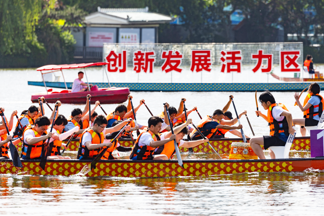 普陀枕水而生、向新而兴。自2004年第一届苏州河龙舟赛正式举办以来,作为其重要选拔赛事,银锄湖上不但诞生冲刺国际舞台的运动健儿,还掀起了全民龙舟热潮——从企业职工到社区居民,从青年学生到退休长者,参赛者以多元身份共绘“百舸争流”的当代图景。将“奋楫争先”化作具象的鼓点与浪花,既是传统体育精神的城市化表达,更是以文化认同凝聚城区发展向心力的生动实践。