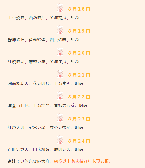 宜川社区食堂一周菜单(8.18-8.24)来啦