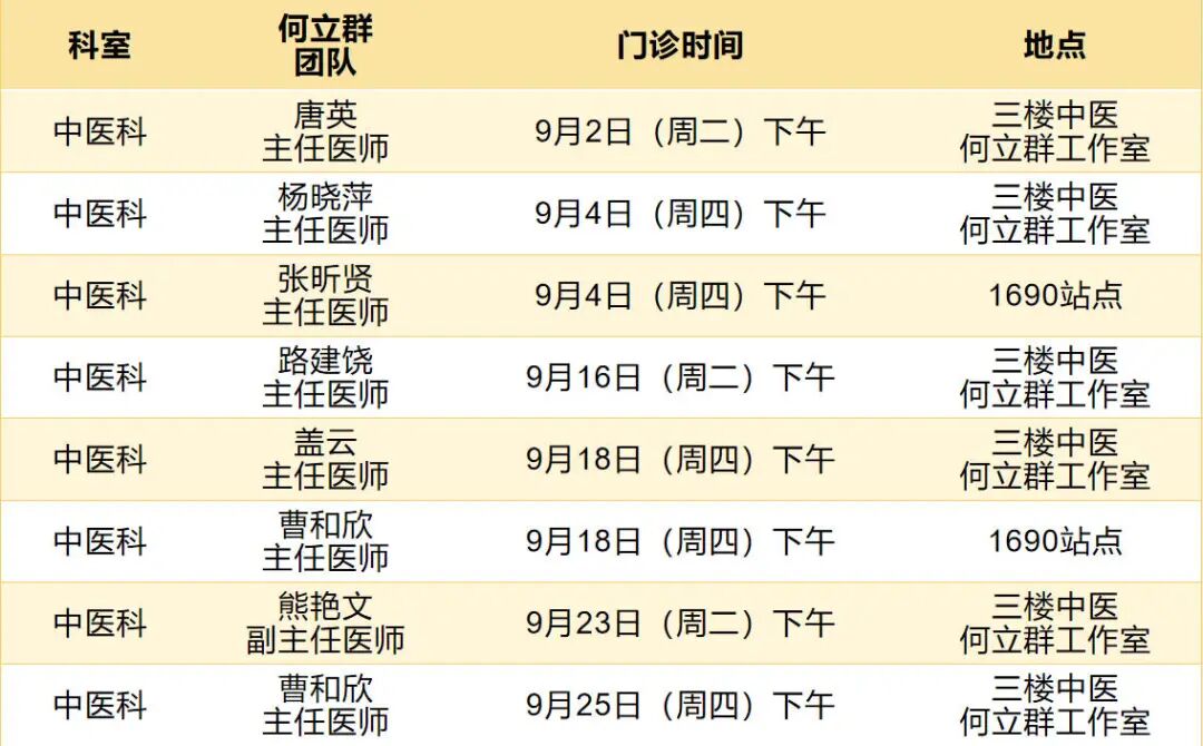 便民医讯 | 何立群名中医工作室——9月专家门诊时间