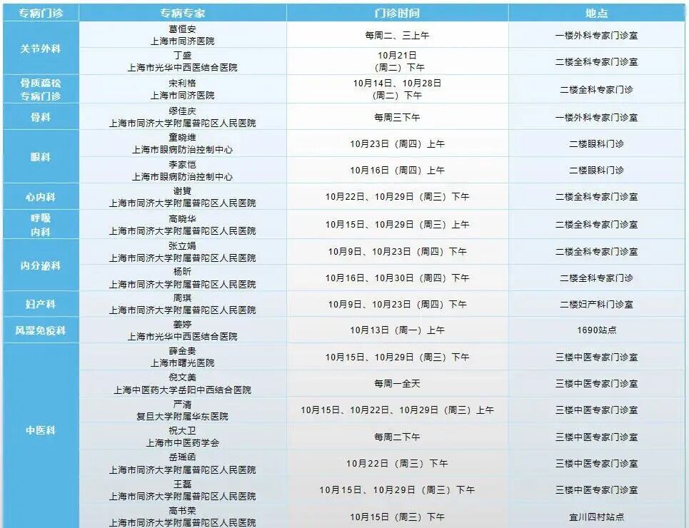 家门口就能看专家!10月宜川社卫专家门诊安排请查收