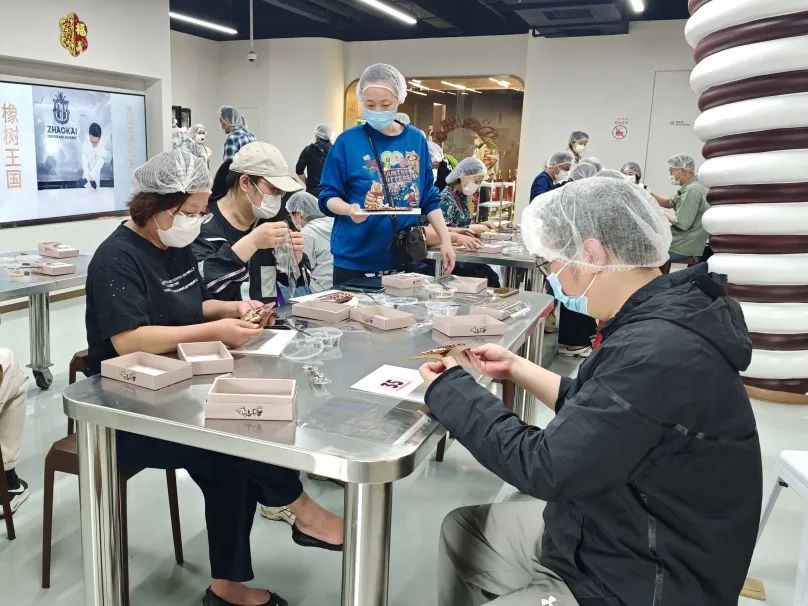 在百诺工厂,志愿者们不仅参观了标准化的生产车间,还亲身体验了巧克力 DIY。专业师傅详细讲解了食品制作过程中选料及时间、温度控制对品质的重要影响。从巧克力原料的融化温度到冷却定型的时间把握,每一个细节都关乎着食品安全与口感。