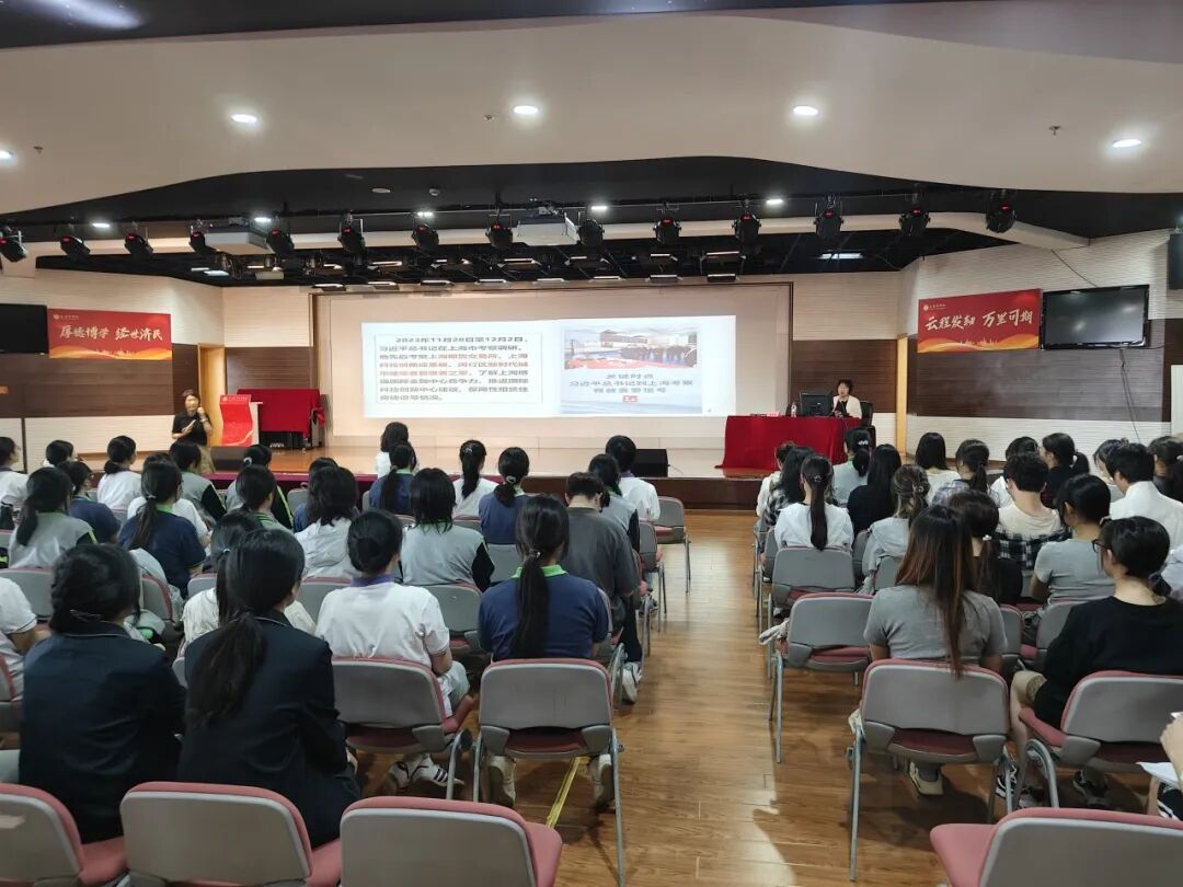 宣讲正式开始前,普陀区委党校教研室主任郝云玲教授与街道新时代文明实践分中心工作人员作为特邀嘉宾参加了学校组织开展的“上海商业会计学校普陀校区2025-2026学年第一学期团总支学生会表彰大会”,学校志愿服务负责老师回顾总结了开学以来,结合街道“启航行动3.0”文明实践项目,学校“新时代文明实践品牌志愿服务队”在市级爱国主义教育基地、文化展馆、新时代文明实践点等多元阵地开展的系列学生校外思政课、社会实践大课堂,对学生在参与社会实践中展现的“迎难而上、勇于担当”的优良品格给予了肯定,并希望大家再接再厉,再后续开展的服务项目活动继续发力,做新时代下的青年表率。