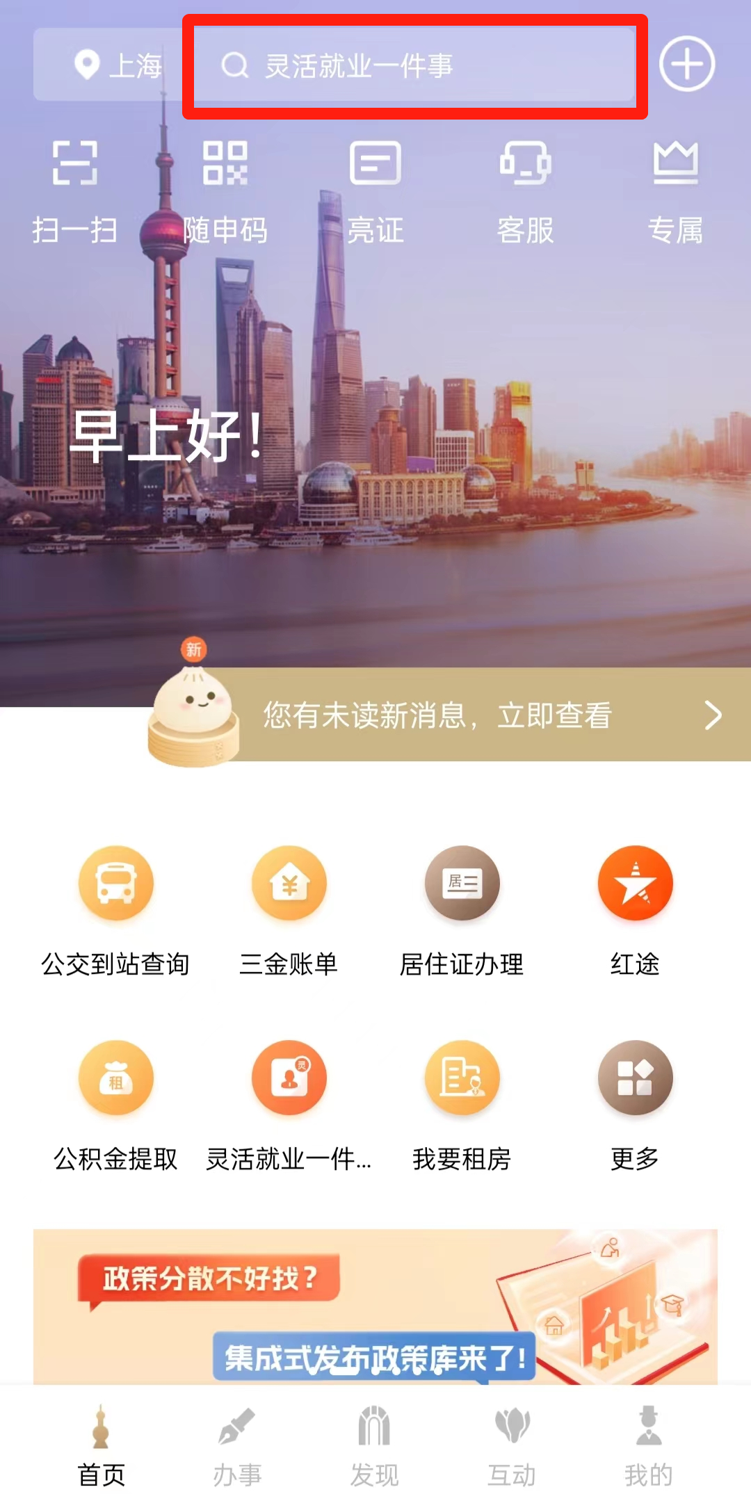 第一步:打开“随申办·市民云”APP,并输入”普陀旗舰店“