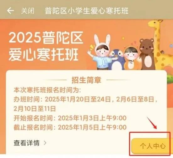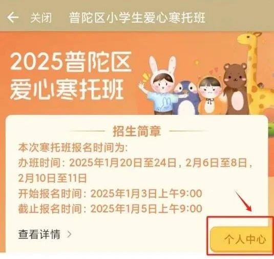 手把手教你报名!普陀区小学生爱心寒托班报名详细攻略看过来 发布时间:2024年12月26日来源: 上海普陀