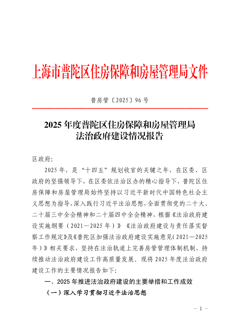 2025年度普陀区住房保障和房屋管理局法治政府建设情况报告