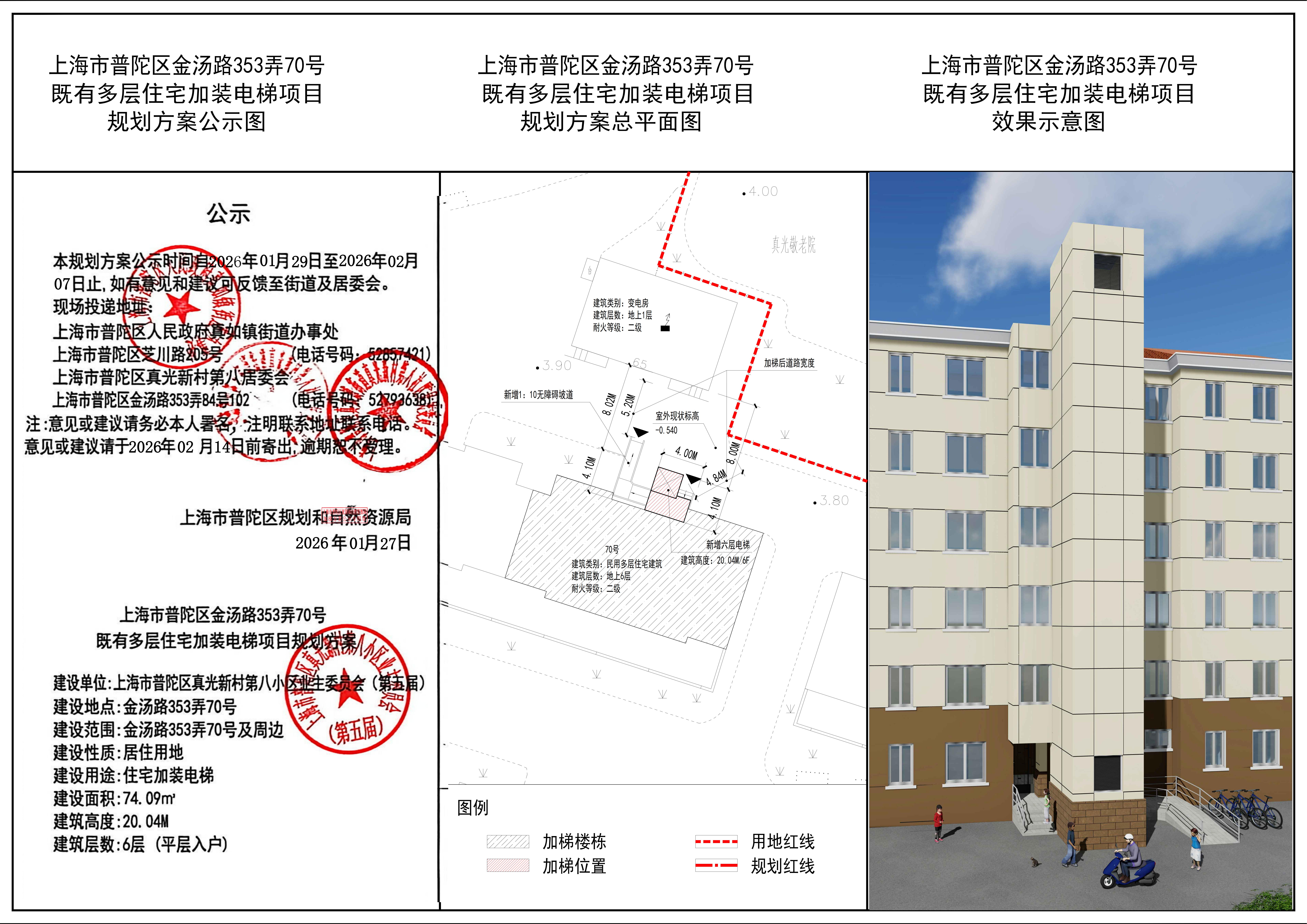 上海市普陀区金汤路353弄70号既有多层住宅加装电梯项目规划方案公示