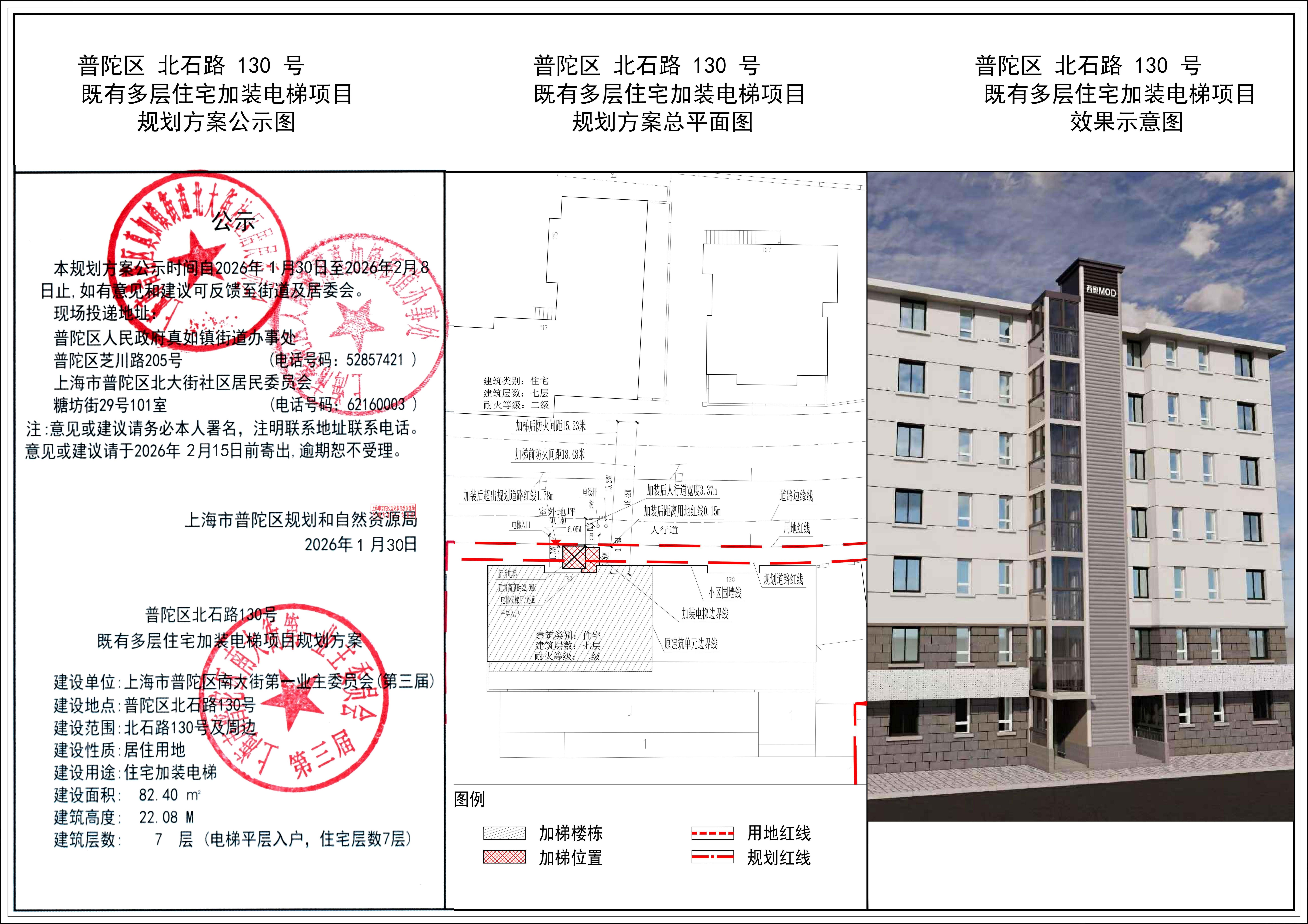 普陀区北石路130号既有多层住宅加装电梯项目规划方案公示