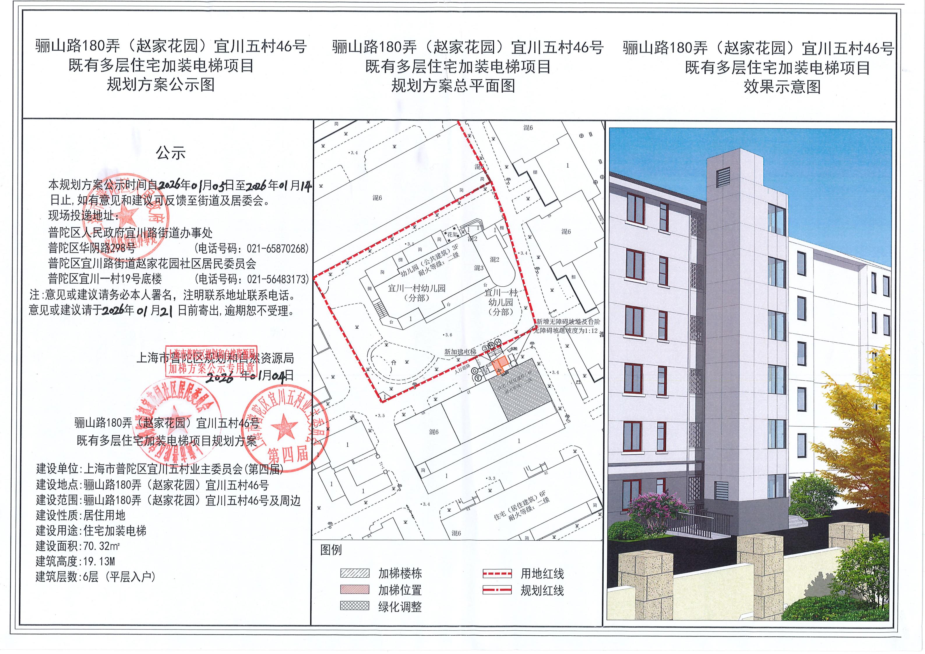骊山路180弄(赵家花园)宜川五村46号既有多层住宅加装电梯项目规划方案公示