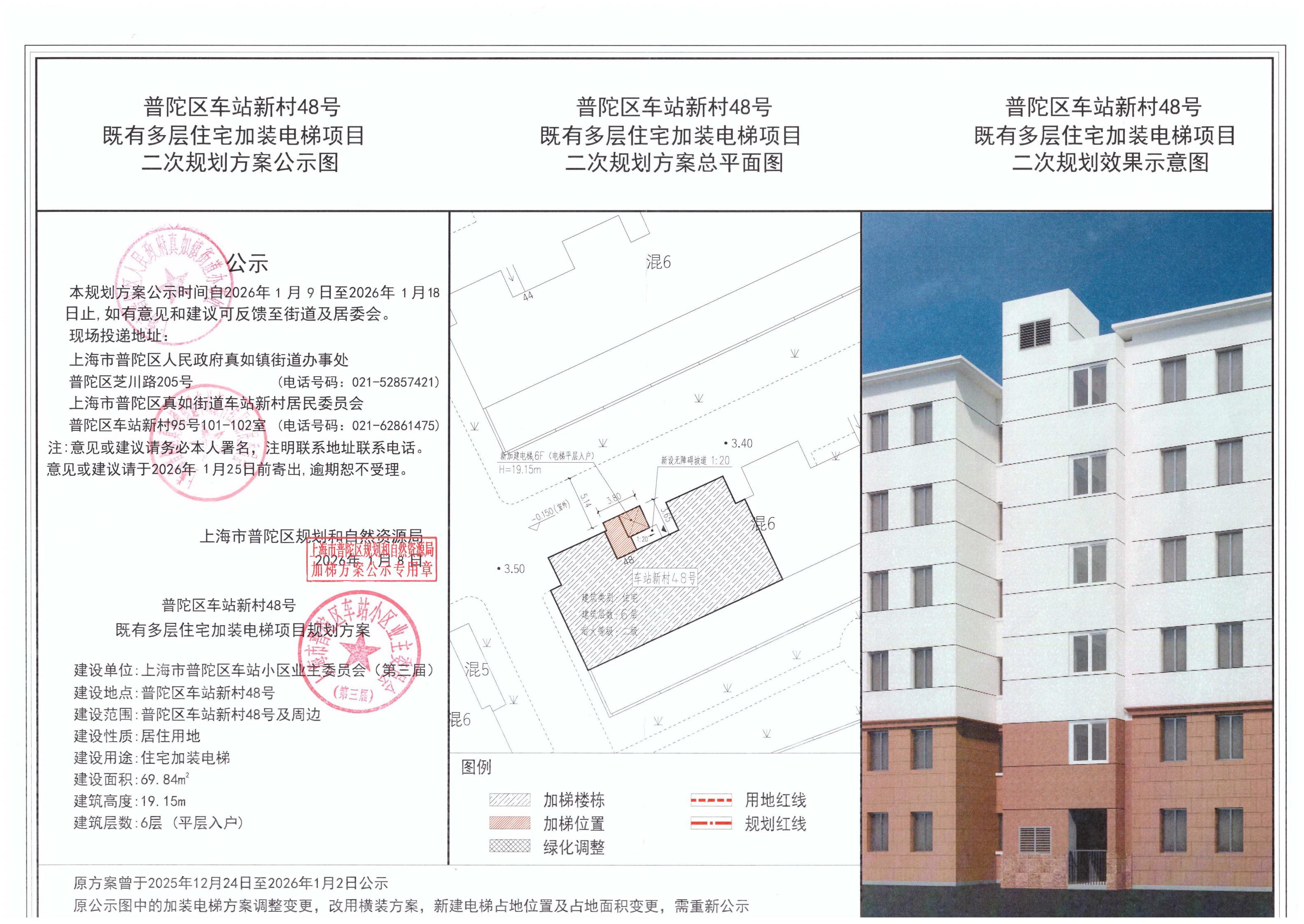普陀区车站新村48号既有多层住宅加装电梯项目二次规划方案公示