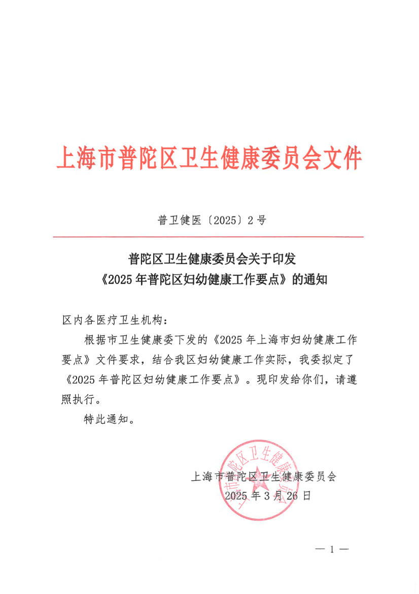 普陀区卫生健康委员会关于印发《2025年普陀区妇幼健康工作要点》的通知