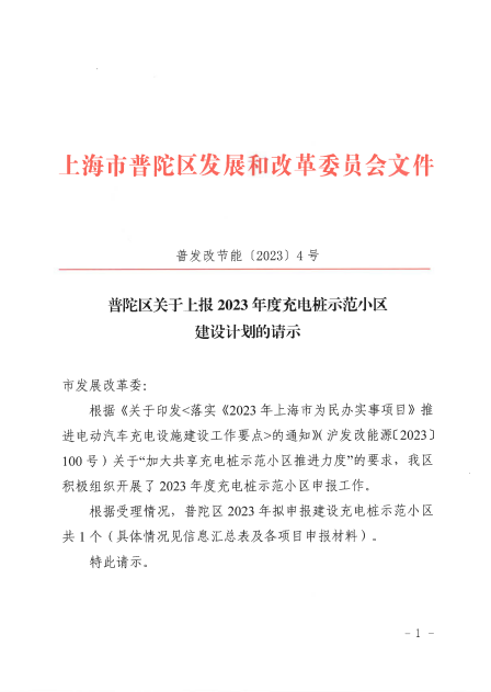普陀区关于上报2023年度充电桩示范小区建设计划的请示