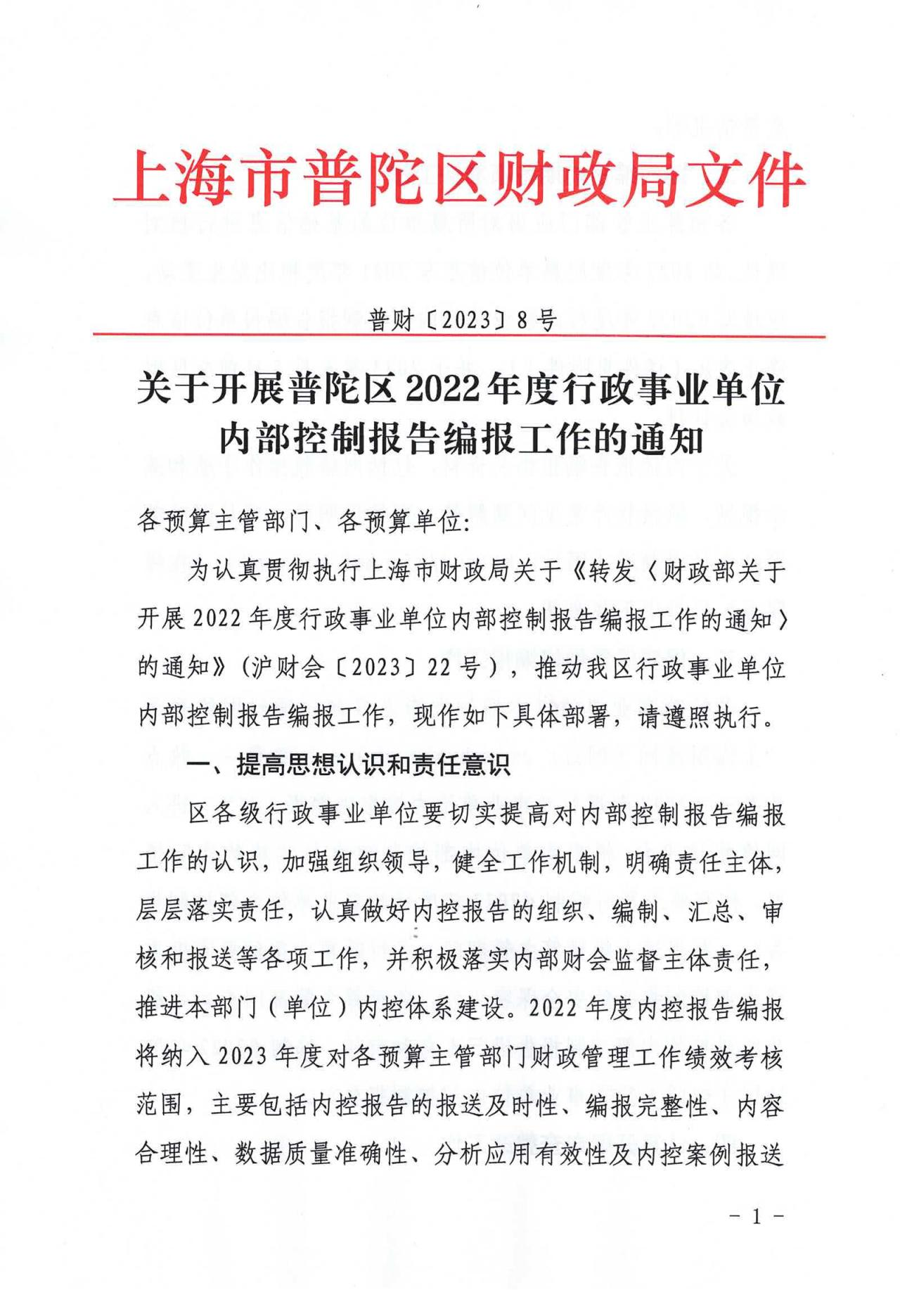 关于开展普陀区2022年度行政事业单位内部控制报告编报工作的通知