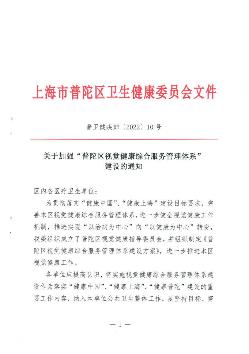 关于加强“普陀区视觉健康综合服务管理体系”建设的通知