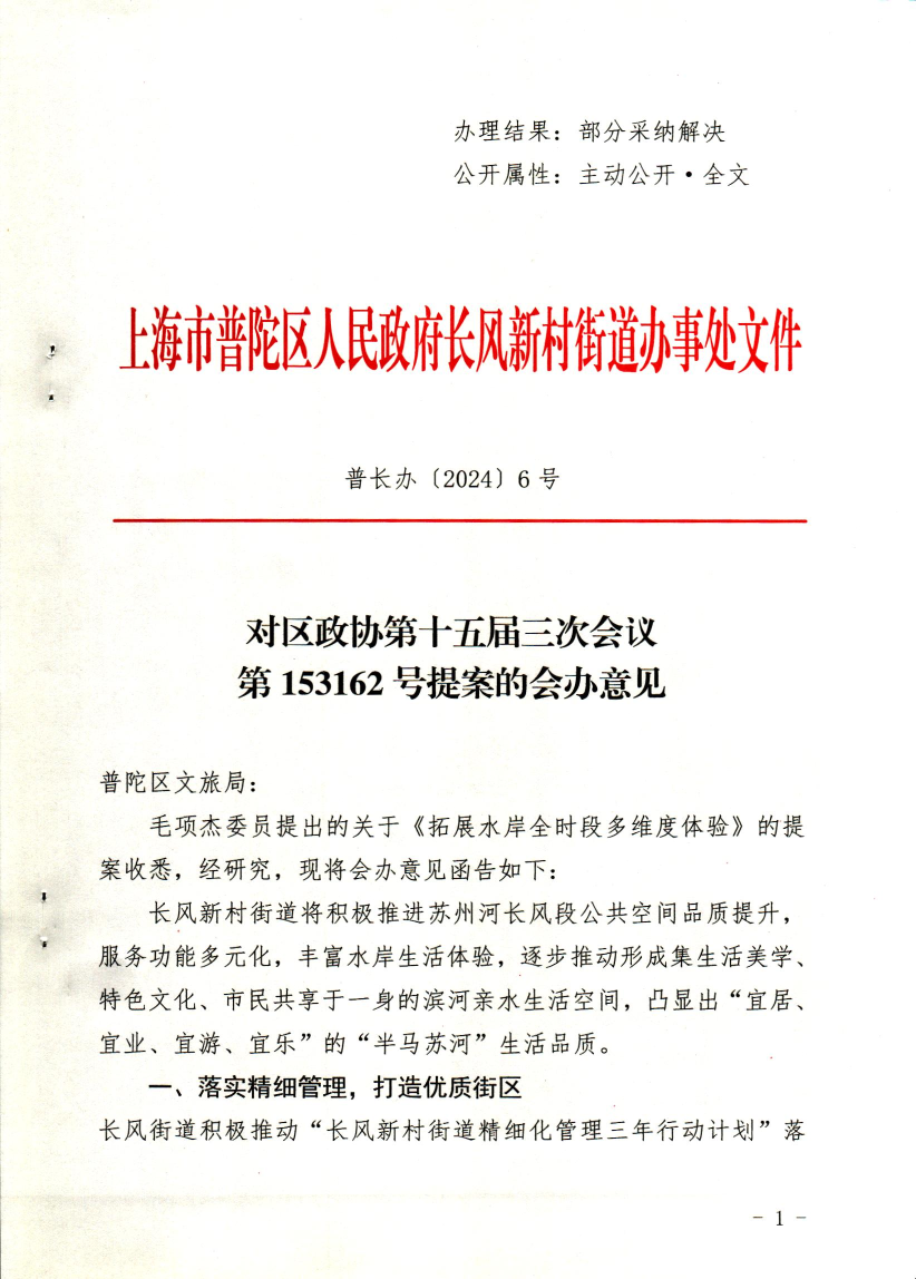 毛项杰委员提出的关于《拓展水岸全时段多维度体验》的提案收悉,经研究,现将会办意见函告如下: