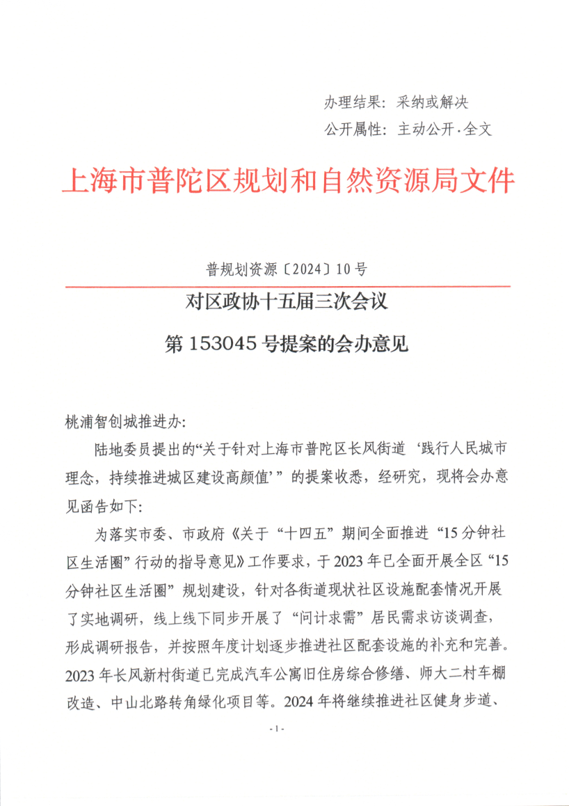 陆地委员提出的“关于针对上海市普陀区长风街道‘践行人民城市理念,持续推进城区建设高颜值’”的提案收悉,经研究,现将会办意见函告如下: