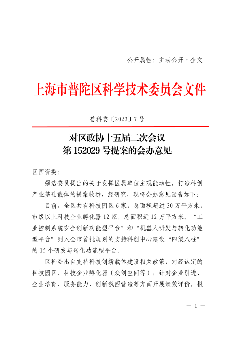 强浩委员提出的关于发挥区属单位主观能动性,打造科创产业基础载体的提案收悉,经研究,现将会办意见函告如下: