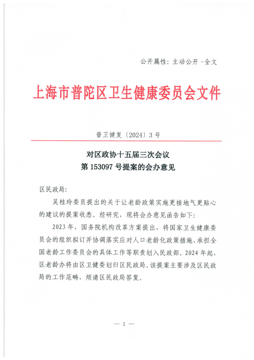 2023年,国务院机构改革方案提出,将国家卫生健康委员会的组织拟订并协调落实应对人口老龄化政策措施、承担全国老龄工作委员会的具体工作等职责划入民政部。2024年起,区老龄办将由区卫健委划归区民政局。该提案主要涉及区民政局的工作范畴,烦请区民政局答复。