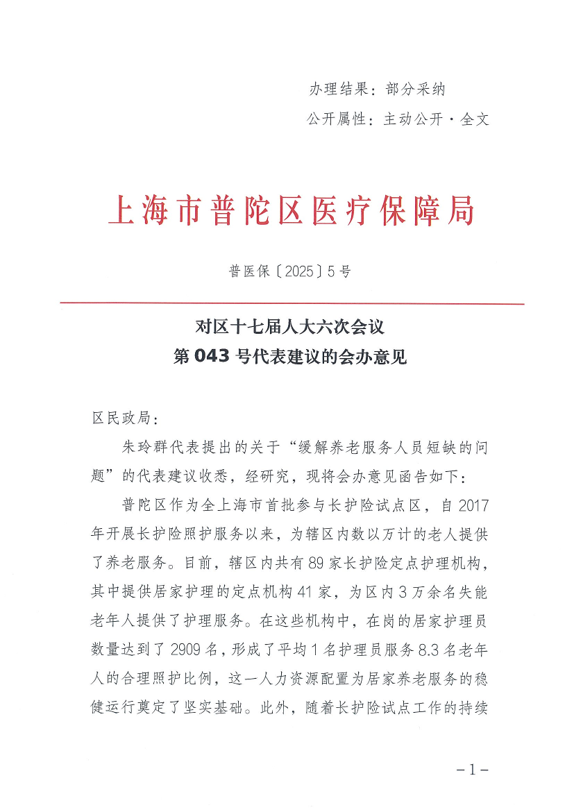 朱玲群代表提出的关于“缓解养老服务人员短缺的问题”的代表建议收悉,经研究,现将会办意见函告如下: