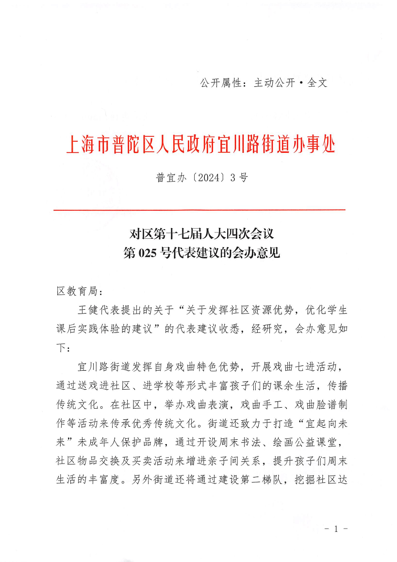 王健代表提出的关于“关于发挥社区资源优势,优化学生课后实践体验的建议”的代表建议收悉,经研究,会办意见如下: