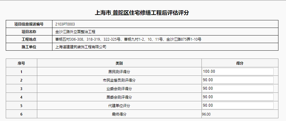 关于金沙江路外立面整治工程后评估考核公示