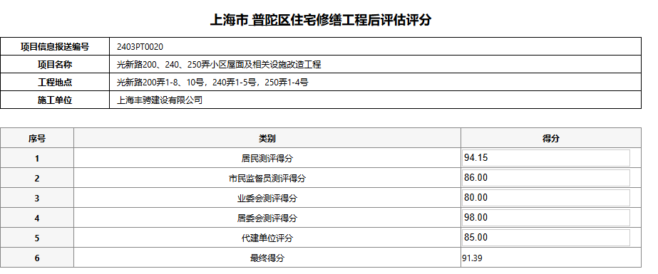 关于光新路200、240、250弄小区屋面及相关设施改造工程后评估考核公示