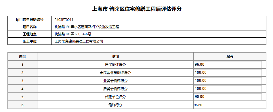 关于桃浦路191弄小区屋面及相关设施改造工程后评估考核公示