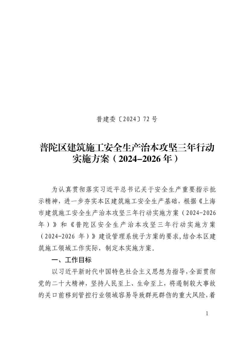 普陀区建筑施工安全生产治本攻坚三年行动实施方案(2024-2026年)