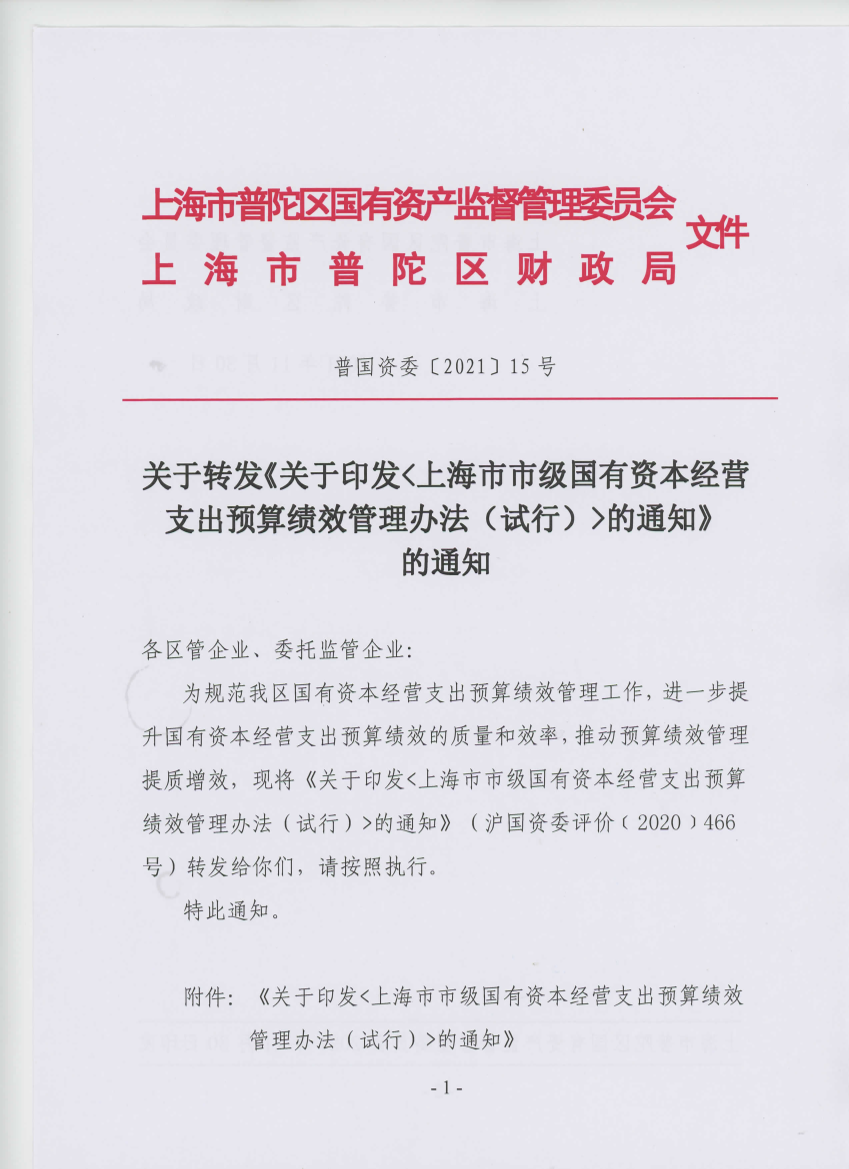 为规范我区国有资本经营支出预算绩效管理工作,进一步提升国有资本经营支出预算绩效的质量和效率,推动预算绩效管理提质增效,现将《关于印发<上海市市级国有资本经营支出预算绩效管理办法(试行)>的通知》(沪国资委评价﹝2020﹞466号)转发给你们,请按照执行。