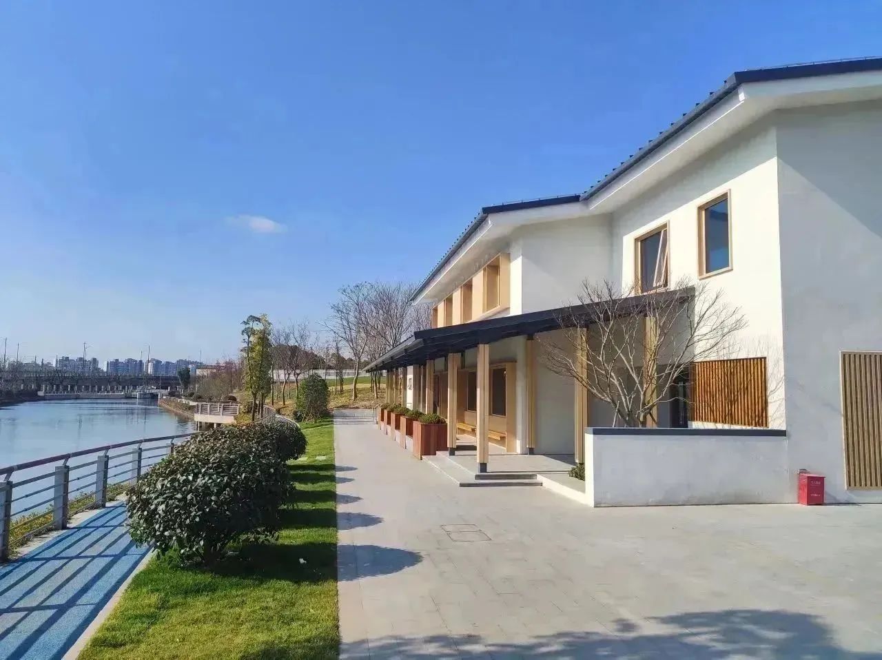 环城绿道驿站配套服务建筑临湖布局,为游客提供更舒心的休憩服务,形成水绿交融、景观突出、服务齐全的普陀区环城生态公园带建设样板。