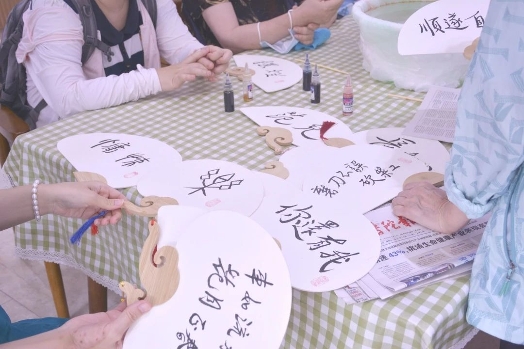此外,养老院每周都会组织各类精彩的活动,如书法、绘画、棋牌等,让老年人在活动中发挥余热,增进友谊。现场,参观人员一同体验非遗漆扇制作,扇面祝福语都出自院内的长者。大家深刻感受到了养老院“老有所学、老有所乐”的浓厚氛围。