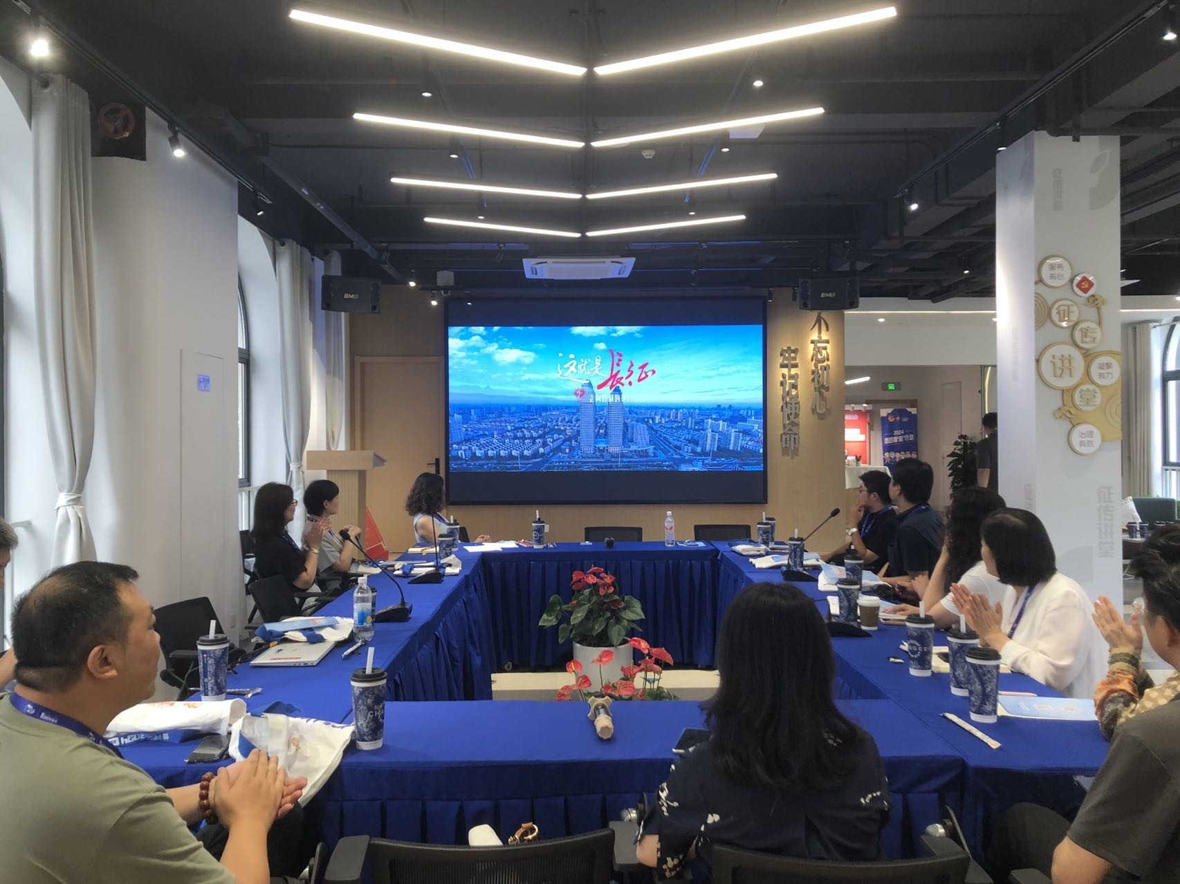 参观结束后,座谈会正式开始。代表们在二楼多功能厅观看了长征镇形象宣传片《这就是长征》,多维度感受长征镇过去三十多年来发生的翻天覆地变化和取得的卓越成就。