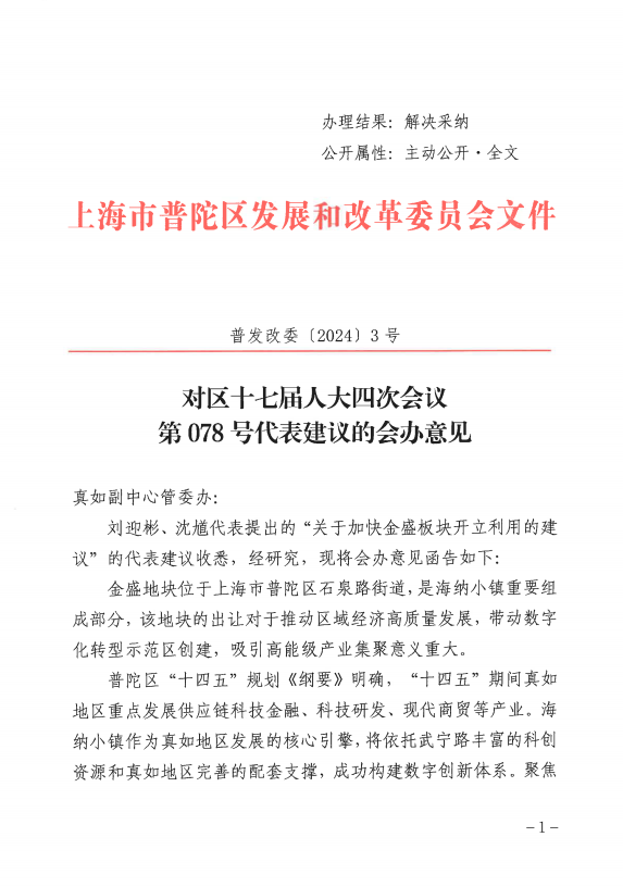 金盛地块位于上海市普陀区石泉路街道,是海纳小镇重要组成部分,该地块的出让对于推动区域经济高质量发展,带动数字化转型示范区创建,吸引高能级产业集聚意义重大。