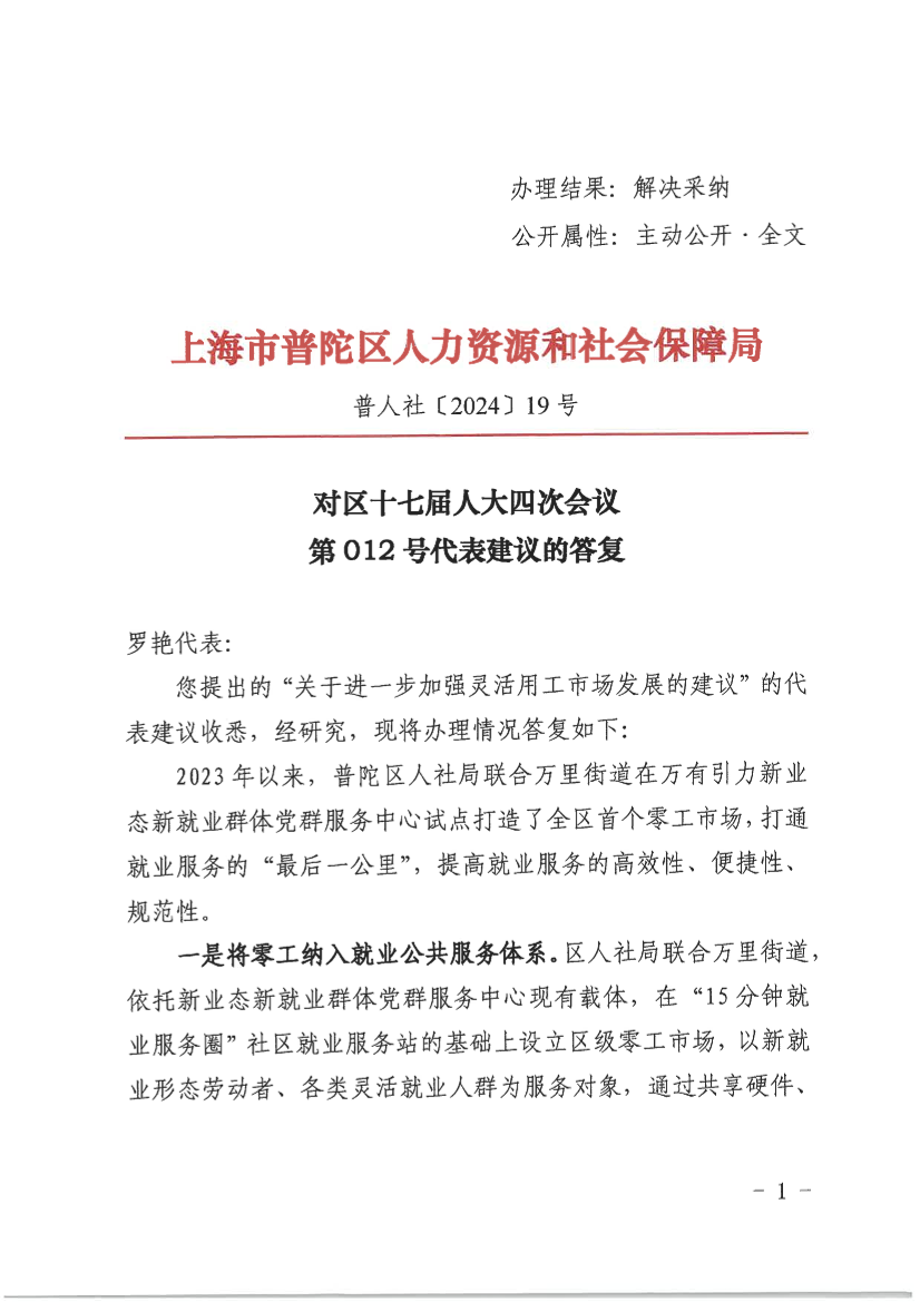 您提出的“关于进一步加强灵活用工市场发展的建议”的代表建议收悉,经研究,现将办理情况答复如下: