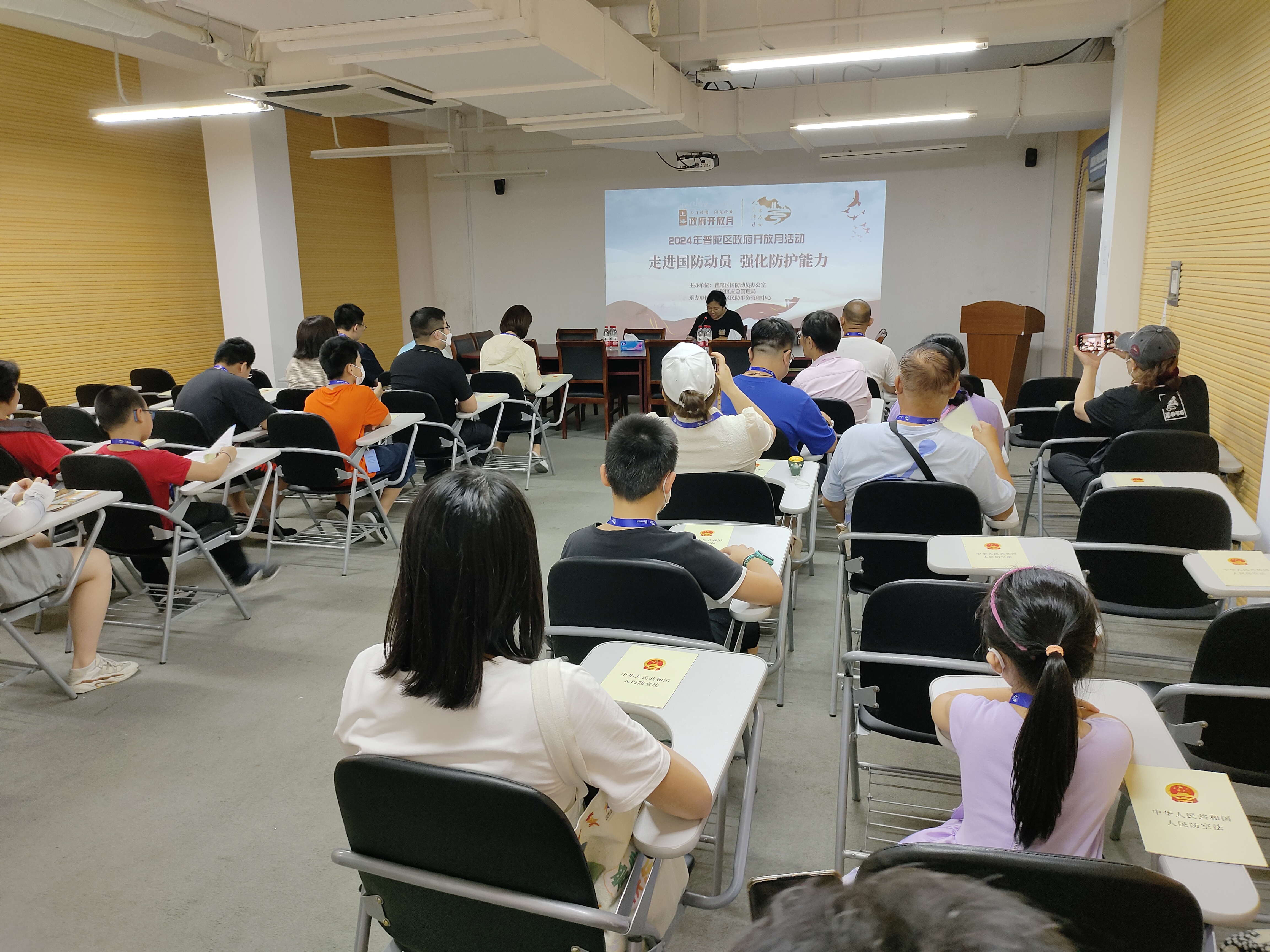 为了更好地搭建政府与群众沟通的桥梁,全方位展示单位的主责主业、重要思想以及与群众息息相关的理论内容,8月1日上午,普陀区国防动员办公室联合区应急管理局,在普陀区公共安全教育馆开展了“走进国防动员,强化防护能力”为主题的政府开放月活动,近30名市民代表参加活动。