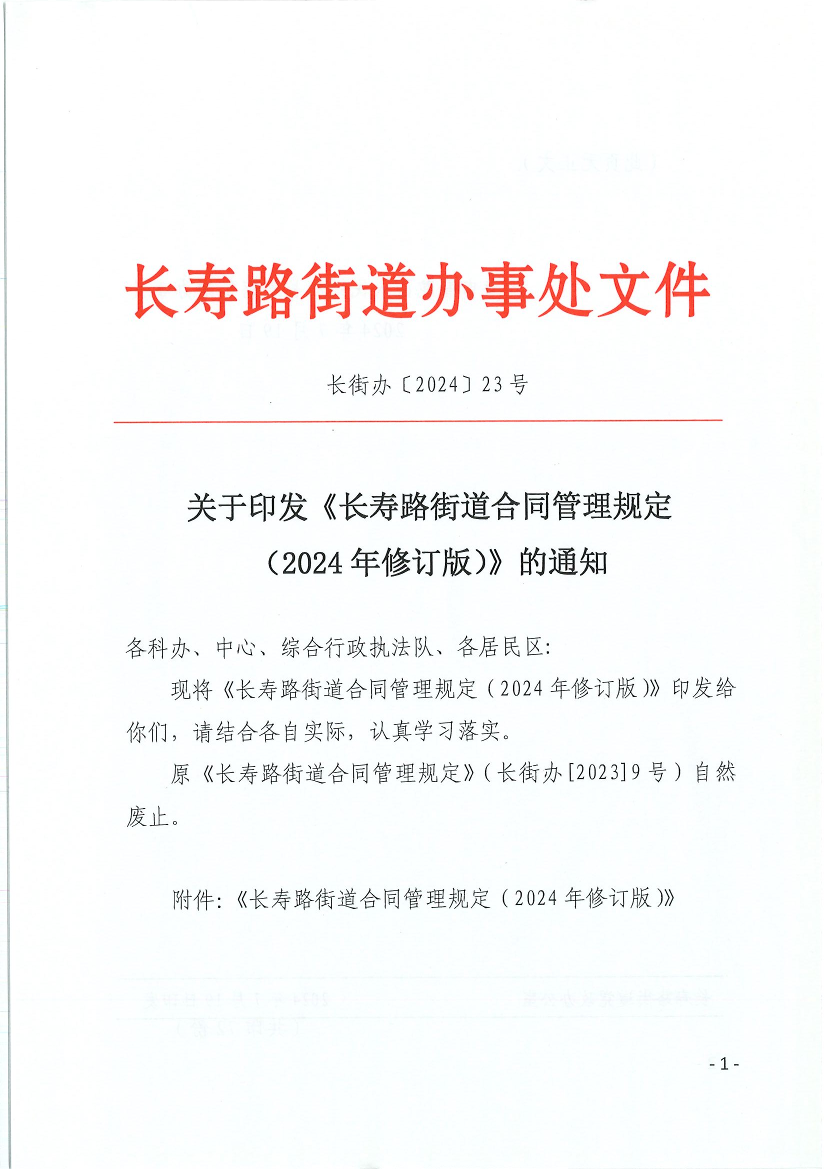 关于印发《长寿路街道合同管理规定(2024年修订版)》的通知